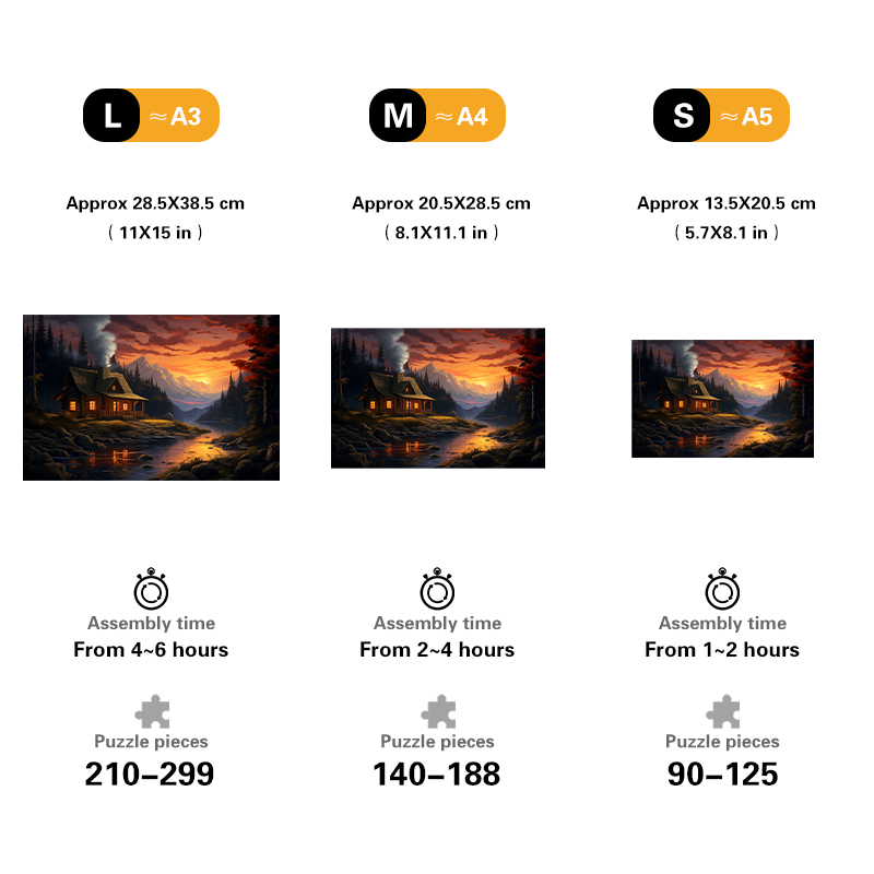 size:M(A4) Approx 35x35 cm (14x14 inches) - 120~160 pcs , assembly time 2-4 hours.
