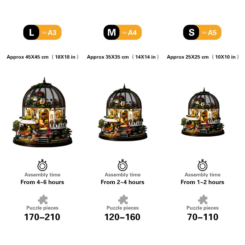 size:S(A5) Approx 25x25 cm ( 10x10 inches) - 70~110 pcs , assembly time 1-2 hours.
