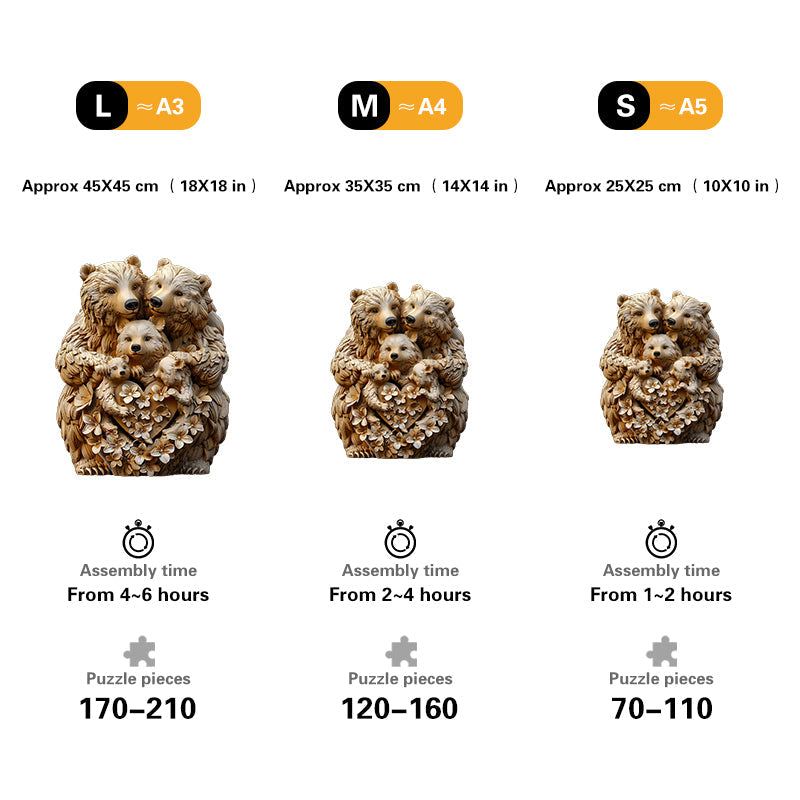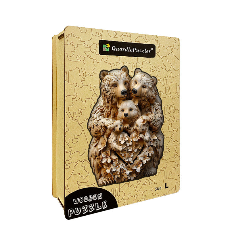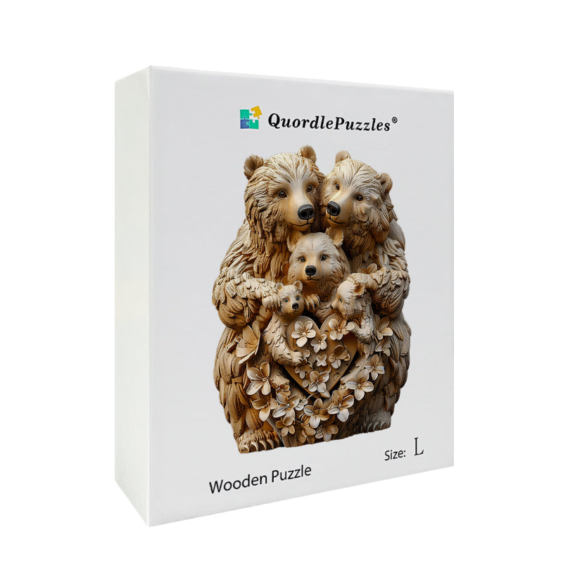 Family of Bears in Carved Heart Wooden Jigsaw Puzzle