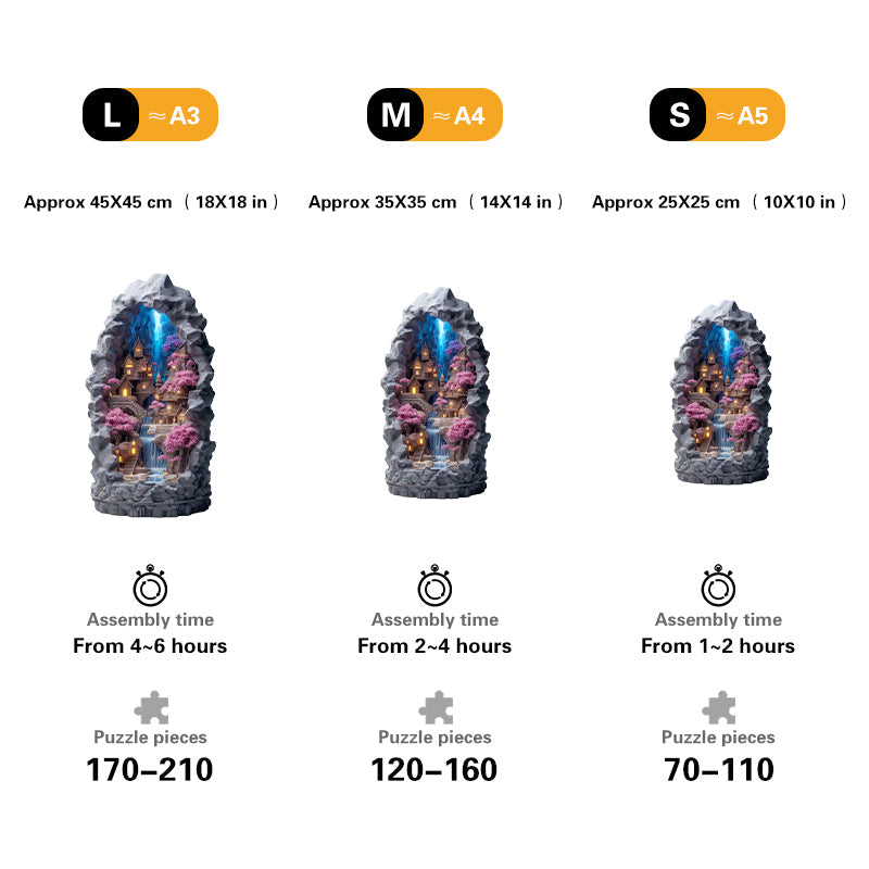 size:M(A4) Approx 35x35 cm (14x14 inches) - 120~160 pcs , assembly time 2-4 hours.
