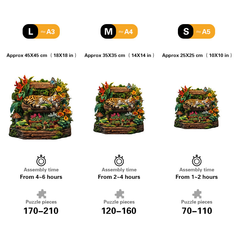 You can enjoy this nature-themed puzzle relaxing time. There are multiple sizes. Our wooden jigsaw puzzle is made of small pieces shaped like savanna animals and plants.