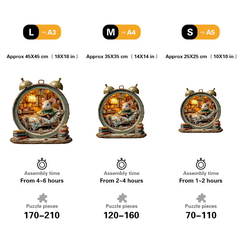 Alarm Clock Mouse Wooden Jigsaw Puzzle