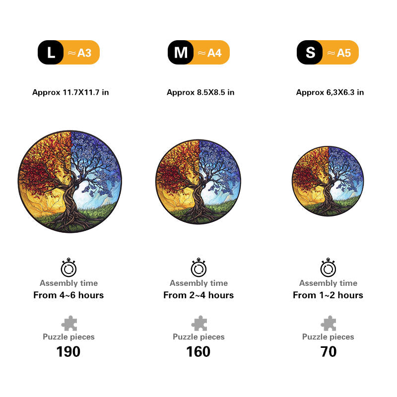 size:L(A3) Approx 45x45 cm (18x18 inches) - 170~210 pcs , assembly time 4-6 hours.
