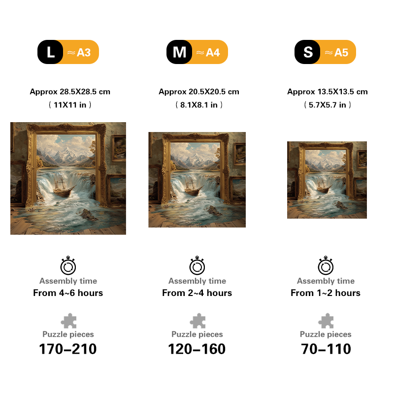size:M(A4) Approx 35x35 cm (14x14 inches) - 120~160 pcs , assembly time 2-4 hours.