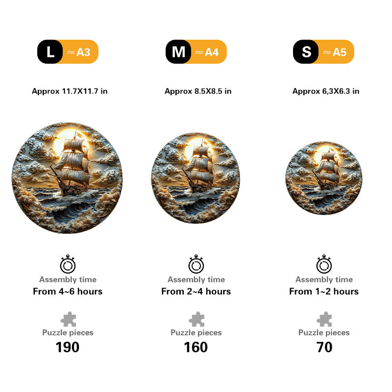 size:L(A3) Approx 45x45 cm (18x18 inches) - 170~210 pcs , assembly time 4-6 hours.