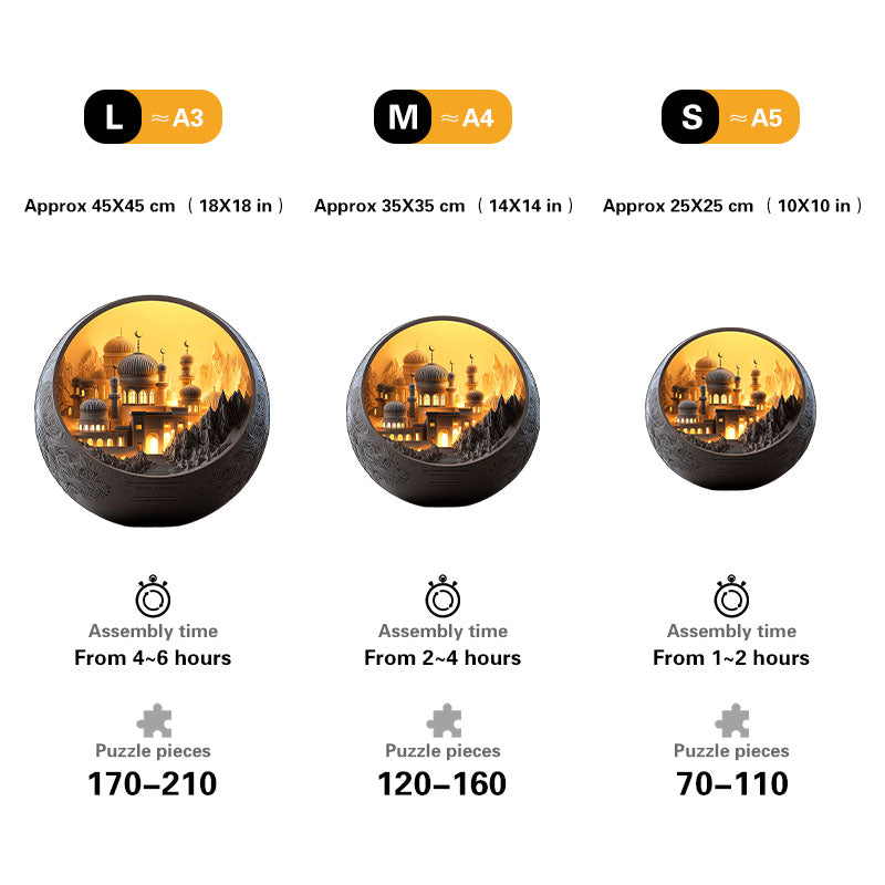 size:L(A3) Approx 45x45 cm (18x18 inches) - 170~210 pcs , assembly time 4-6 hours.