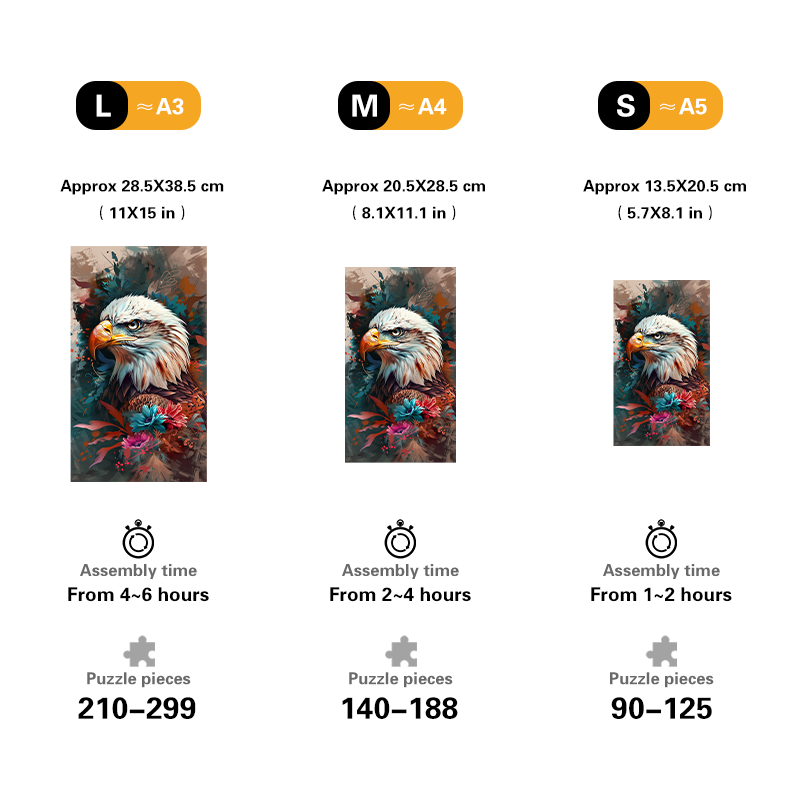 size:M(A4) Approx 35x35 cm (14x14 inches) - 120~160 pcs , assembly time 2-4 hours.