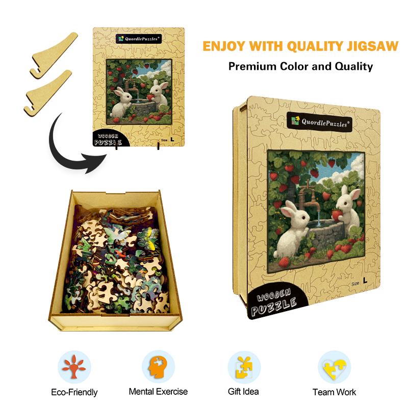 Strawberry Bunnies Wooden Jigsaw Puzzle
