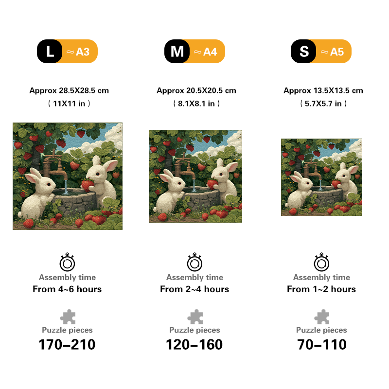 size:M(A4) Approx 35x35 cm (14x14 inches) - 120~160 pcs , assembly time 2-4 hours.
