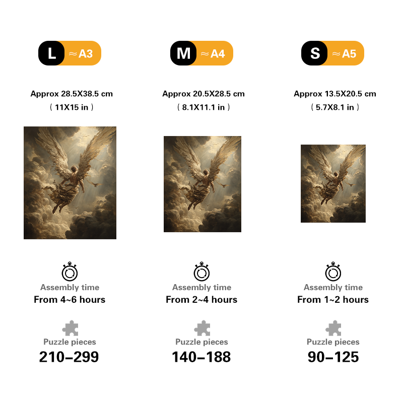 size:M(A4) Approx 35x35 cm (14x14 inches) - 120~160 pcs , assembly time 2-4 hours.